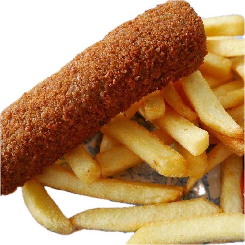 (patat met een kroket, een sausje en een blikje drinken naar keuze)Incl. € 0,10 Wettelijke Milieu Toeslag