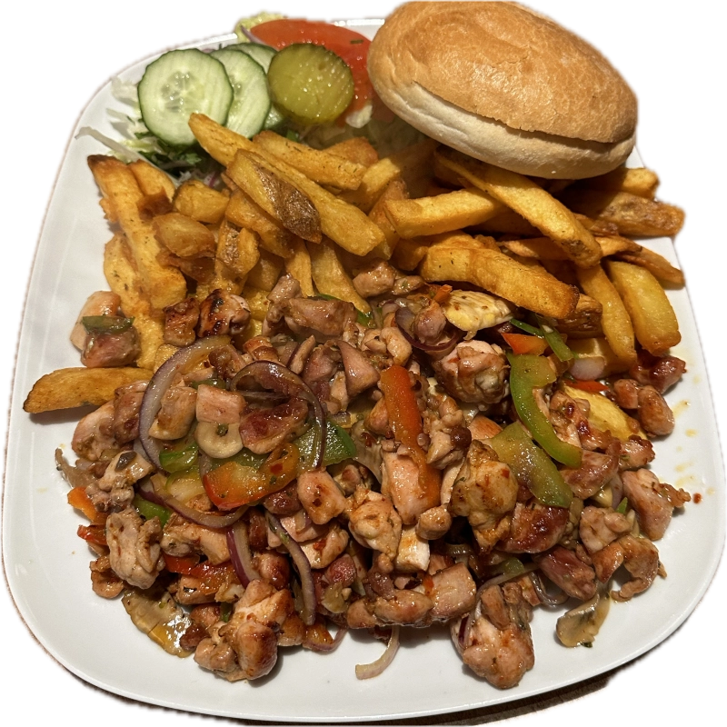 Met extra kipfilet,paprika, ui, champignon, friet, frisse salade.Incl. € 0,25 Wettelijke Milieu Toeslag
